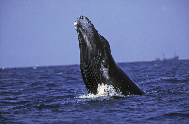 Known for its powerful songs and acrobatic breaches, the humpback whale migrates long distances across the Atlantic Ocean.